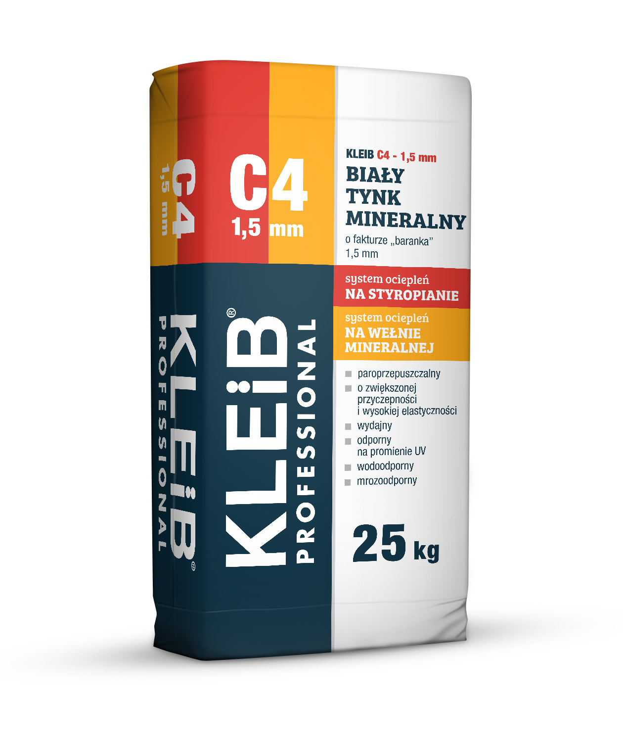 C4 1,5 mm Biały tynk mineralny o fakturze baranka KLEIB Professional